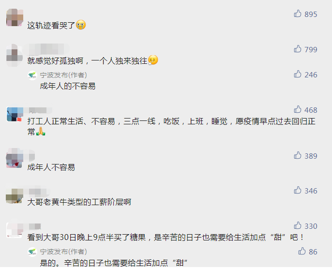 • 社会关注与共情:王某某的轨迹引发网友广泛关注。许多人表示心疼 ,认为其工作时间过长,甚至在身体不适时仍坚持工作,体现了普通打工人的艰辛 。有网友评论:“看轨迹就是普普通通打工人的一天 ”“这个工作时间真是泪目了”。