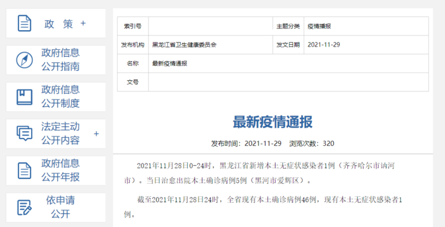 黑龙江疫情通报: