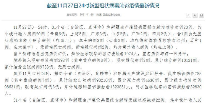 • 境外输入病例情况:境外输入现有确诊病例667例,其中含重症病例18例 。