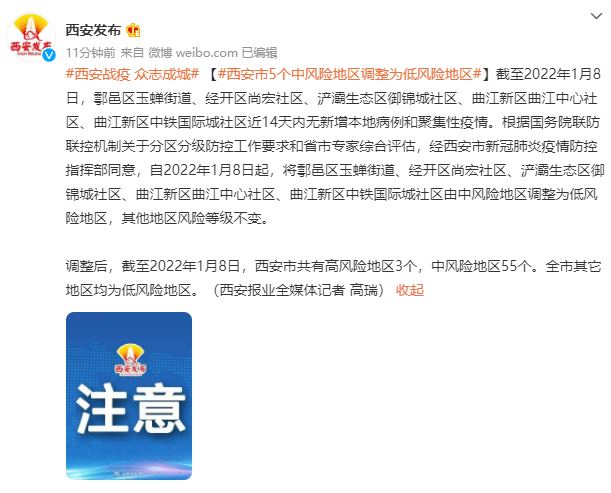 自2022年3月7日24时起 ,西安市新增5个中风险地区,具体调整区域如下: