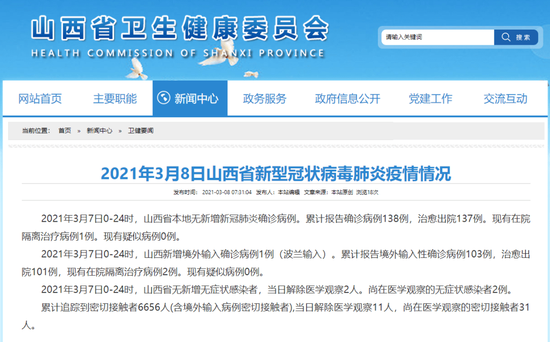 2022年2月24日,太原市报告1例本土确诊病例(轻型),为六十六中高中部住校学生 ,自2月20日18时13分起未离开学校 。