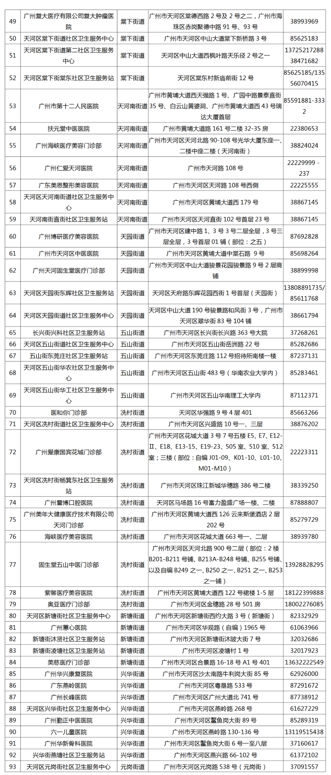 石牌街道:KK桌球俱乐部 、中山大学附属第三医院发热门诊;