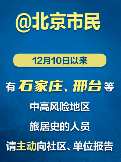 _进返京风险人员及时主动报备。与官方公布的病例活动轨迹有交集人员 、风险地区进返京人员、接到外省各级疾控中心电话告知为密切接触者等风险人员,立即主动向社区、单位、酒店等报告,配合做好集中隔离 、居家隔离、居店隔离、健康监测 、核酸检测等各项防控措施 ,密切关注自己和家人的健康状况,如出现发热、干咳、乏力 、咽痛、嗅(味)觉减退、腹泻等症状,应立即告知社区工作人员 ,配合采取相应管控措施。