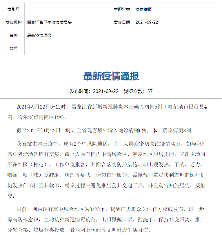 黑龙江疫情通报: