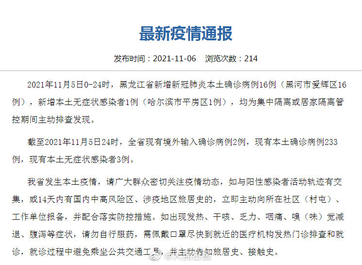 3. 10月31日黑龙江省新增本土确诊病例5例+无症状感染者184例详情