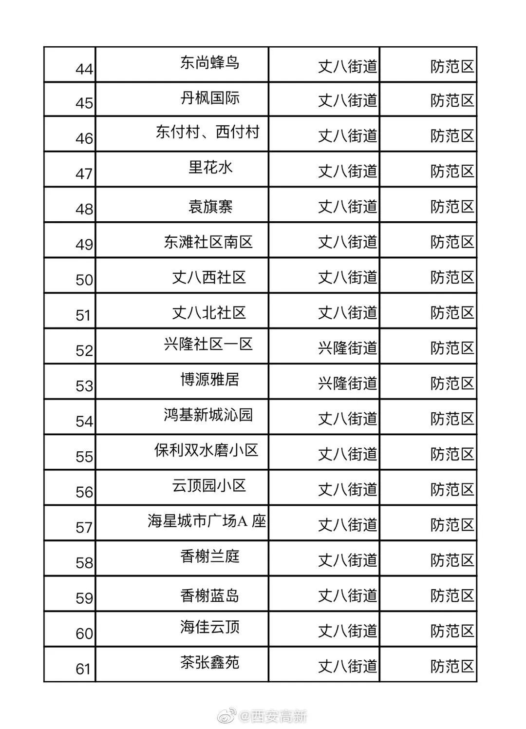 - 防范区:建章路街道全域和三桥街道三桥新街以北,封控区、管控区以外的区域 。